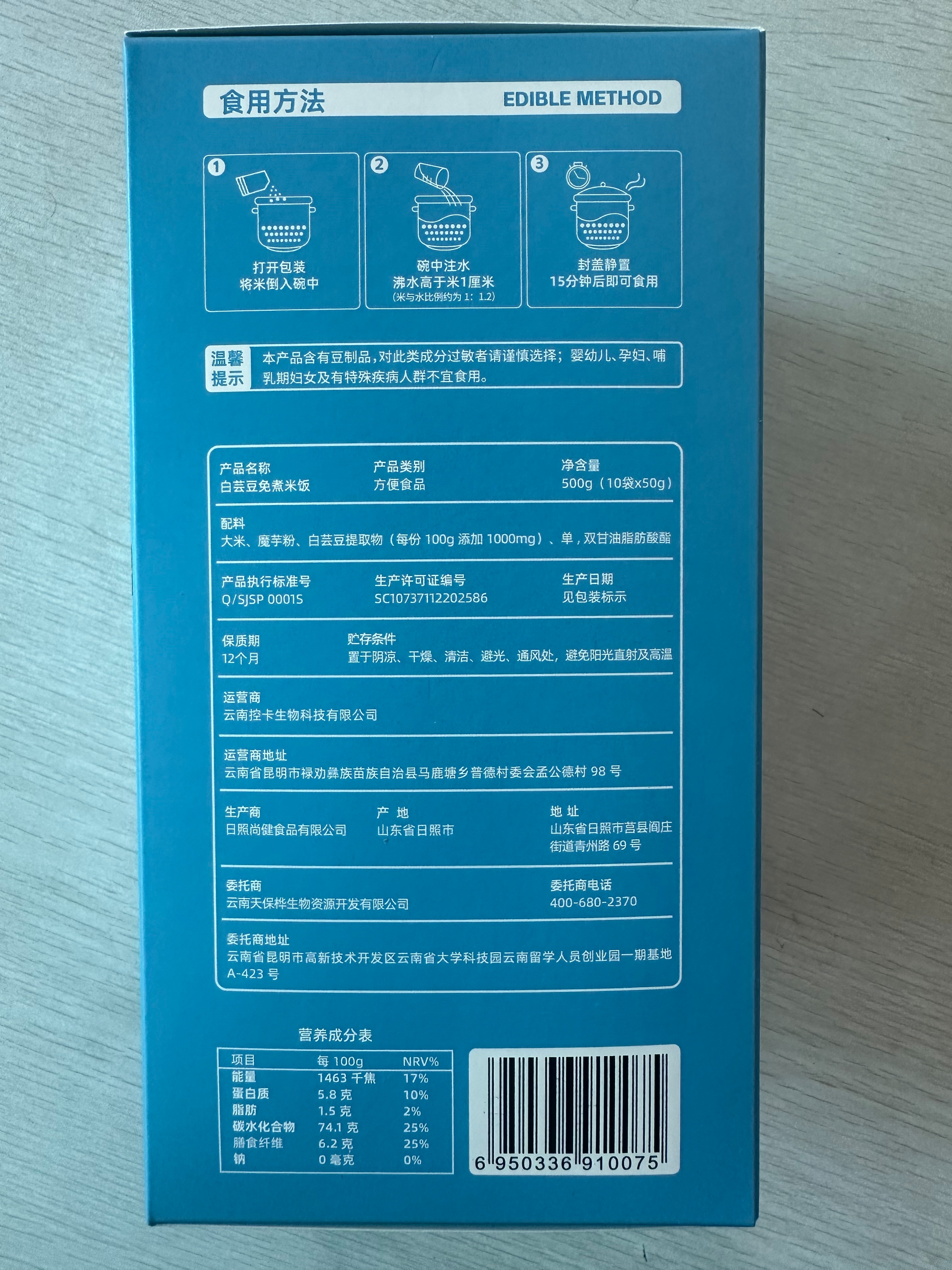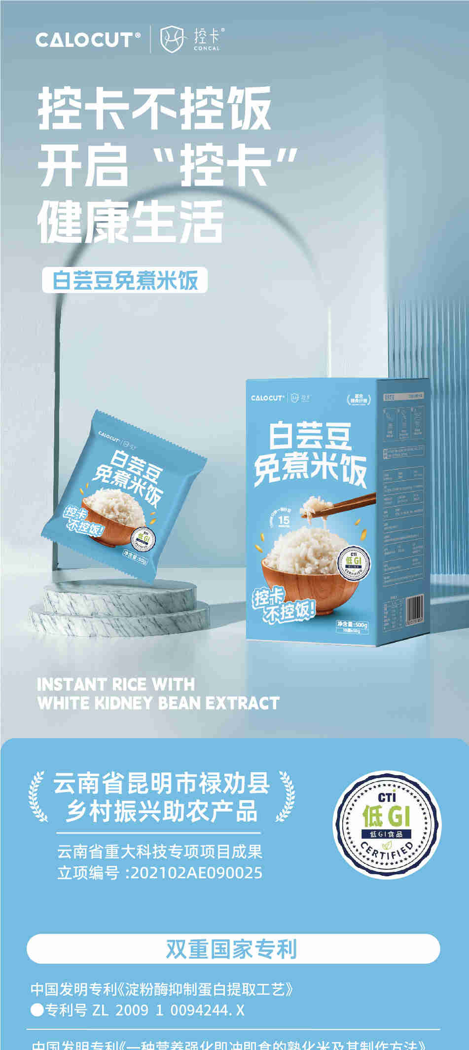 云南控卡生物科技calocut白芸豆免煮米饭500g(10袋*50g)